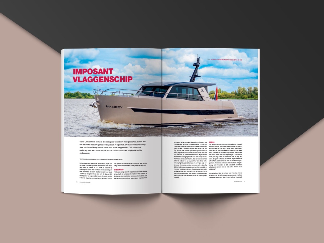 In the December 2025 issue of Motorboot, editor Gabriël van Seumeren stepped aboard the Discovery 48 OC. He was full of praise for everything that makes Super Lauwersmeer unique: craftsmanship, silence on board, well-thought-out engineering and an interior that feels like a warm home on the water.