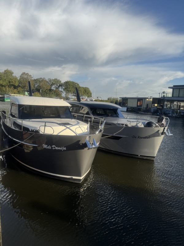 Het begon in juni 2022, allemaal heel toevallig in de haven van Spakenburg. Marleen herinnert zich nog goed hoe zij en haar man Aad daar voor het eerst met hun Discovery 42 OC in de haven lagen. “Een man op de fiets spotte ons en vertelde dat een vriend van hem een Super Lauwersmeer liet bouwen.” Een appje later stond die vriend, Jaap van den Hoogen, aan boord van De Kwakel. “Na een rondleiding vroeg hij of zijn vrouw Gerie ’s avonds ook even een kijkje mocht nemen aan boord. Dat ‘even’ werd een poos, want om 1.00 uur vertrokken ze pas weer huiswaarts.”
