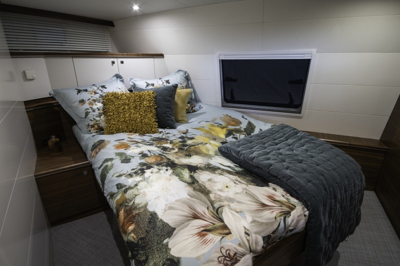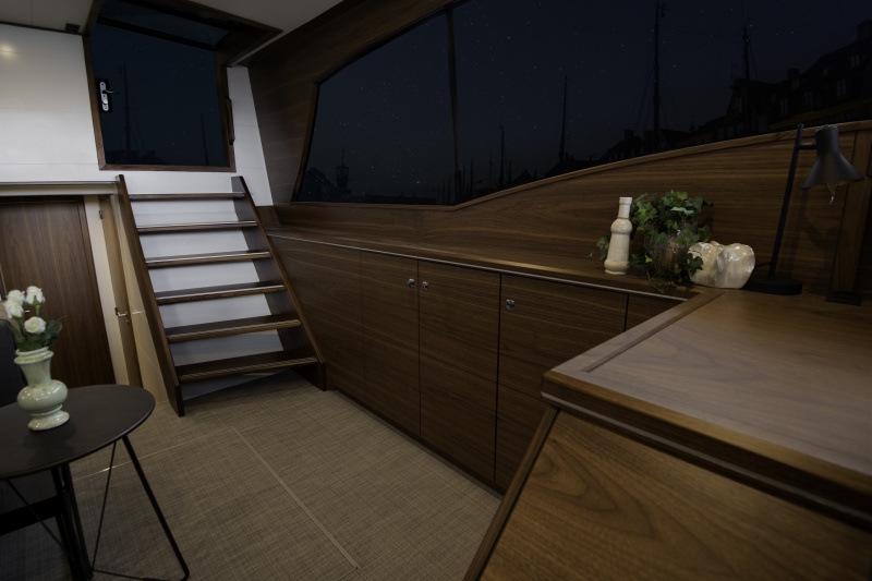 En hoe! Dankzij een lengte van liefst 14,3 meter beschikt de Discovery 47 AC over het grootste vloeroppervlakte en meest royale interieur dat de werf ooit bouwde. Een hotelkamer als eigenaarshut, een compleet ingerichte wasserette, een badkamer en keuken zoals thuis en een gastenverblijf dat net zo goed dienst zou kunnen doen als eigenaarshut. Alles behoort tot de mogelijkheden. Of het nou in de achterkajuit of in het voorschip is; het comfort, de luxe en de ruimte zijn overal. Met een stahoogte van 2,05 meter vormt de salon hierin de overtreffende trap. Dankzij de gigantische raampartij van de opbouw overvallen daar het open karakter en de prachtige inval van daglicht u. Alsof u een varende serre binnentreedt!