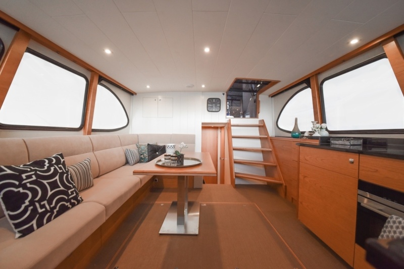 De in Sneek eveneens aanwezige Discovery 46 OC bevestigt de kwaliteit van de Friese die volgend jaar haar 50-jarige bestaan viert. Het schip is al drie seizoenen in gebruik en ondanks het intensieve gebruik van de familie Baars, die zo’n 7 maanden per jaar varen, verkeert het nog altijd in nieuwstaat.